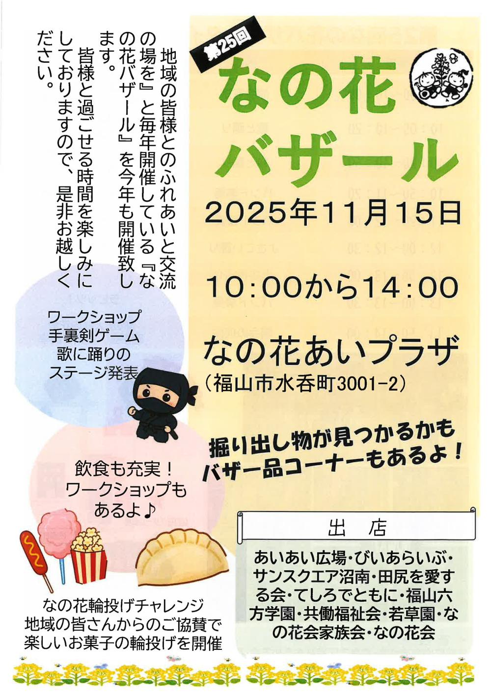 2025年11月15日(土) 第25回なの花バザール出店のお知らせ